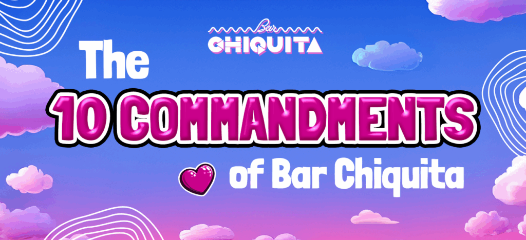 The 10 Commandments of Bar Chiquita What’s up, babies! I’ve been thinking about you a lot! With so much praying going on, I was overcome by the spirit of the holy rumba, so today I bring you the 10 commandments of Bar Chiquita, non-negotiable, so we can have a great time. There’s nothing better than […]